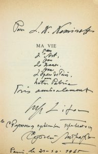 LIFAR Serge. Ma vie. Paris, Rene Julliard, 1965. Envoi autographe de l’auteur. ЛИФАРЬ, Сергей Михайлович (1905-1986) [- автограф]. [Моя жизнь].