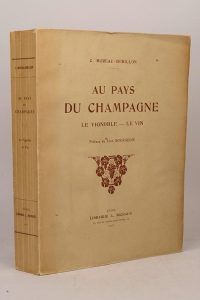 Édition originale parue peu de temps après le décès de l'auteur (1872-1923). # Un des 125 exemplaires de tête sur vélin à la cuve du Marais. # Importante monographie illustrée d'un grand nombre de reproductions de gravures et documents anciens. Historique de la vigne et du vin de Champagne de l'époque gallo-romaine jusqu'aux temps récents : foires, querelle des Champenois et des Bourguignons, Godinot, Dom Pérignon, Oudart, l'industrie au XIXe siècle, la vie du vigneron, la Champagne et la guerre, le vignoble (sol, climat, cépages), la vigne, le vin. # Chwartz, n°233.