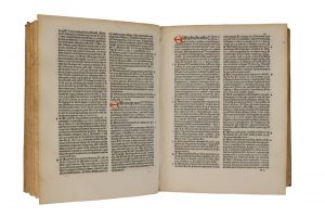 In-4° (mm 218x160). Carte [6] (la prima bianca), 354, [10]. Segnatura: [*]6; a-z & [con] [rum]8; 110. Testo in carattere gotico (G 110, G 65) su due colonne in 53 linee. Interamente rubricato in rosso. Strappetti riparati a una carta, lontani dal testo, arrossature sparse, qualche carta un po' brunita e aloni d'umidità marginali ma buona copia. Legatura settecentesca in piena pergamena rigida con titoli manoscritti al dorso. Note di possesso di cinquecentesca mano alla prima e ultima carta, alcune postille al testo. Importante dizionario teologico stampato per la prima volta a Chivasso nel 1486. L'opera viene citata da Thorndike IV, 354 per la posizione dell'Autore nei confronti della scienza alchemica, poiché fu uno dei pochi giuristi rinascimentali a condannarla e a giudicarla illecita. Si veda anche lotto n. 17 di questo catalogo. Cfr. BMC V 383; Goff A-714; GW 1924; Hain-Copinger 5384*; Pellechet 3814 (var) & 3814A; Proctor 4913.