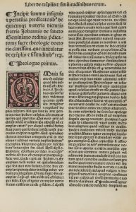 Johannes de Sancto Geminiano, Summa de exemplis ac similitudinibus rerum... (Al colophon): Venetiis: per Johannem et Gregorium de Gregoriis fratres, 1499 die 12 Iulii.