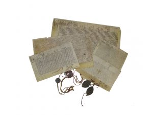 Raccolta di 5 pergamene con sigillo. XVI-XVII.