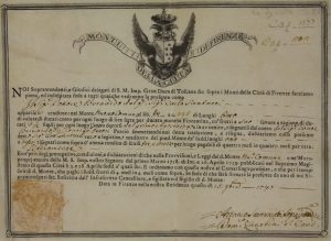 Pergamena stampata con note e firme manoscritte (mm 200x265 ca.). Stemmi medicei. Conservato il sigillo cartaceo (solo 1 un poco danneggiato). Documenti rari e ricercati. (4)