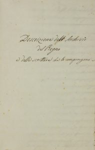 Descrizione dell'archivio del Regno e delle scritture che lo compongono. XIX secolo.