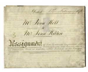 Manoscritto a inchiostro nero (mm 680x760). Accordo di emissione di titoli tra Jesse Holt e Jesse Hilton. Timbri in ceralacca conservati.