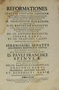 Reformationes ad nonnullas rubricas Statuti civitas Sarzanae... Genuae: typis Antonij Casamarae, 1705.