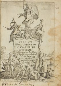 Statuti dell'ordine de' cavalieri di S.to Stefano... (Al colophon:) In Firenze: nella stamperia di Francesco Onofri, 1665.