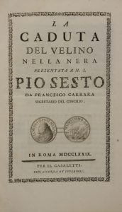 Carrara Francesco, La caduta del Velino nella Nera... In Roma: per il Casaletti, 1779.