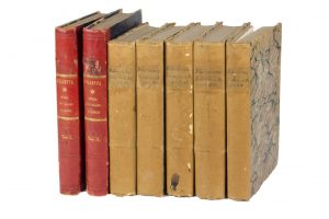 2 volumi in-8° (mm 225x140). 351, [1]; 366, [2] bianche. Antiporte allegoriche ai volumi e 13 tavole incise in rame fuori testo. Legatura in mezza pelle rossa con piatti marmorizzati, punte perdute. SI AGGIUNGE: Giannone Pietro, Storia civile del Regno di Napoli. Volume I (-V). Milano: Borroni e Scotti, 1844-47. 5 volumi in-8°. (7) Lotto non passibile di restituzione.