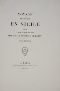 Gigault de La Salle Achille Étienne, Voyage pittoresque en Sicilie [...]. Tome premier (-second). A Paris: De l'Imprimerie de P. Didot, l'Ainé, 1822; De l'imprimerie de Jules Didot Ainé, 1826.