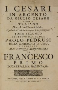 Pedrusi Piovene Paolo Pietro, I Cesari in metallo mezzano e piccolo raccolti nel museo Farnese. Tomo secondo (-decimo). In Parma: nella stamperia di S.A.S., 1701-1727.