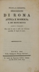 Perego Salvioni Luigi, Nuova e succinta descrizione di Roma antica e moderna e de' monumenti sacri e profani... Roma: nella stamperia Perego Salvioni, 1825.
