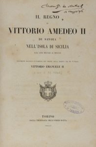 Stellardi Vittorio Emanuele, Il regno di Vittorio Amedeo II di Savoia nell'Isola di Sicilia dall'anno MDCCXIII al MDCCXIX.... Torino: Tipografia degli eredi Botta, 1862-63.