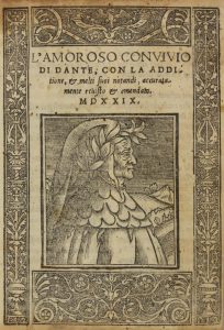 Alighieri Dante, L'Amoroso Convivio [...] con la additione, et molti suoi notandi, accuratamente revisto et emendato. (Al colophon:) Impresso in Vinegia: per Nicolo di Aristotile detto Zoppino, 1529.