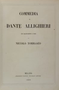 Alighieri Dante, Commedia [...] con ragionamenti e note di Niccolò Tommaséo. Milano: Francesco Pagnoni, 1865.