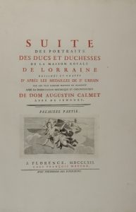 Calmet Augustin, Suite des portraits des ducs et duchesses de la Maison royale de Lorraine [...]. Premiere partie (-seconde). A Florence: chez François Moücke, 1762-1763.