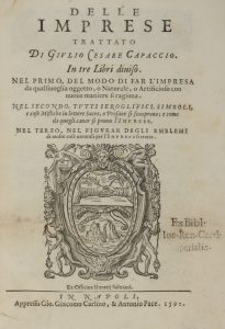 Capaccio Giulio Cesare, Delle imprese trattato [...] in tre libri diviso. In Napoli: ex officina Horatij Salviani, appresso Gio.Giacomo Carlino, & Antonio Pace, 1592.