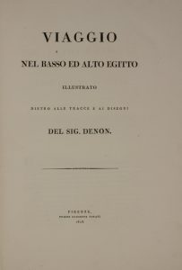 Denon Dominique Vivant, Viaggio nel Basso ed Alto Egitto illustrato dietro alle tracce e ai disegni. Firenze: Presso Giuseppe Tofani, 1808.