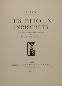 Diderot Denis, Les Bijoux indiscrets. Paris: René Kieffer, 1923.