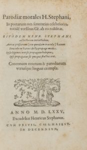Estienne Henri, Parodiae morales. Ginevra: Henricus Stephanus, 1575.