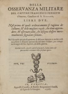Ferretti Francesco, Della osservanza militare [...] libri due. In Venetia: appresso Camillo. & Rutilio Borgomineri fratelli, al segno di S. Giorgio, 1568.