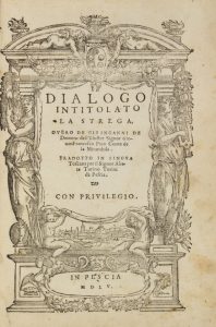 Pico della Mirandola Giovanni Francesco, Dialogo intitolato la Strega, overo de gli inganni de demoni [...] tradotto in lingua toscana per Turino Turini. (Al colophon:) Stampato in Pescia appresso Lorenzo Torrentino stampator ducale, 1555.