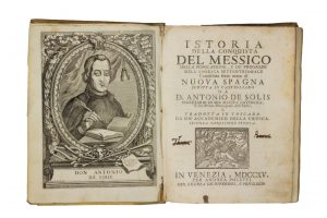 Solis y Rivadeneyra Antonio (de), Istoria della Conquista del Messico, della popolazione, e de' progressi dell'America settentrionale conosciuta sotto nome di Nuova Spagna [...] tradotta in toscano... In Venezia: per Andrea Poletti, 1715.