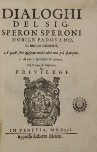 Speroni Sperone, Orationi. In Venezia: presso Ruberto Meietti, 1596.