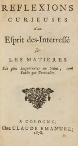 Spinoza Baruch, Reflexions curieuses d'un Esprit des-Interressé sur les matieres les plus Importantes au salut… (Secondo frontespizio:) Traitté des Ceremonies Superstitieuses des Juifs tant Anciens que Modernes. Cologne: Claude Emanuel, 1678.