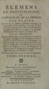 Trincano Didier Gregoire, Élémens de fortification, et de l'attaque et de la défense des places [...] Tome premier (-second). A Toul et à Paris: chez Carez [...], Cellot [...], Jombert [...], Royés, 1786.