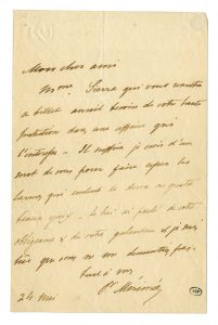 Merimé Prosper, Lettera autografa firmata inviata a Monsieur Mallac. Non datata.