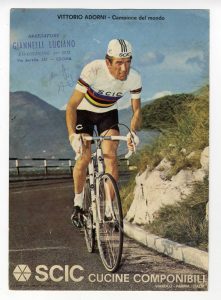 SI AGGIUNGE: Adorni Vittorio. Firma autografa su cartoncino pubblicitario. Non datato (2)
