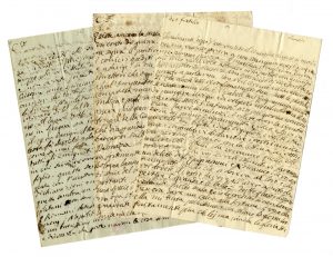 Manoscritti a inchiostro nero su carta bianca e azzurra. Carte con ceralacca. 3 lettere non complete. Dimensioni varie. (35) Lunghe lettere ricche di informazioni sulla vita e il lavoro del poeta, autore tra l'altro del celebre Il Poeta di Teatro (Londra 1809), poemetto tragicomico nel quale racconta con sarcasmo parte della sua vita. Pananti scrive dei suoi viaggi, dei suoi incontri, del collega Ranieri de' Calzabigi, di Robespierre e la situazione a Parigi, di Napoleone, ecc. Una lettera è inviata alla sorella Elisabetta, un'altra al nipote Paolo.