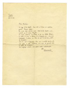 Quasimodo Salvatore, Lettera autografa firmata inviata a Cerdonio. Datata 26 aprile 1935, Sondrio.