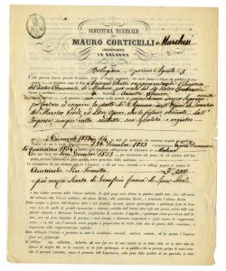 Contratto per la concessione a Modena dello spartito di Rigoletto di Giuseppe Verdi. Datato 1 giugno 1851, Bologna.