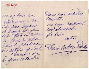 [Voci Melodramma XIX sec] Artôt de Padilla Désirée, Lettera autografa firmata. Datata 16 settembre 1889, Parigi.