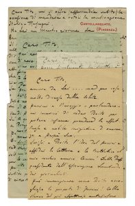 Manoscritti a inchiostro nero e matita. Alcune missive su carta intestata. Dimensioni varie. SI AGGIUNGE: Id., 1 lettera autografa firmata con disegno (manca l'inizio del testo). (10) I E II DOCUMENTO: Lettere di argomento personale e lavorativo, molto articolate, in cui si legge, tra le altre cose, del contratto tra Puccini e i librettisti della Fanciulla del West, le iniziative di Puccini e Boito relativamente alle onoranze di Giulio Ricordi, i rapporti con gli eredi Giacosa, alcuni progetti di lavoro non realizzati con Mascagni, Renato Simoni, Giocondo Fino ecc.