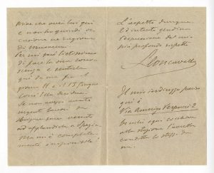 Leoncavallo Ruggero, Lettera autografa firmata ad una cantante. Datata 31 maggio 1918.