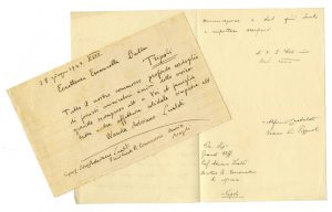 SI AGGIUNGE: Id., Da "La figlia del Re". Manoscritto autografo firmato. Non datato. Manoscritto a inchiostro nero. 4 carte con correzioni. SI AGGIUNGE: Id., 3 lettere, 1 cartolina e 1 discorso (1929) autografi firmati, alcune carte con vari appunti e 1 ritratto a matita del Maestro. 1918-1926. SI AGGIUNGE: 1 lettera autografa firmata dell'arcivescovo di Pozzuoli inviata a Lualdi. Datata 1937. (9)