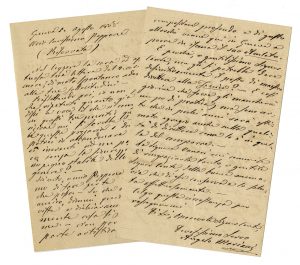 Mariani Angelo, 2 lettere autografe firmate e 1 biglietto da visita. Datati 1866-1868.