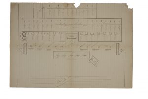 [Mascagni-Soffredini], Disegno autografo di Soffredini (?) in pianta della distribuzione degli esecutori per l'esecuzione di una composizione per soli, coro e orchestra con Mascagni al pianoforte e Soffredini alla direzione. Anni '80-XIX secolo.