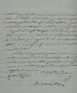 Mayr Giovanni Simone, Documento autografo firmato inviato alla Congregazione di Carità, Bergamo. Datato 26 aprile 1813.