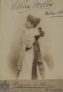 Melba Nellie, Ritratto fotografico con firma autografa. Datato Milano 1893.
