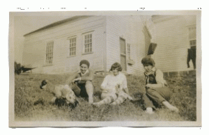 assises dans l’herbe en compagnie d’un agneau à la ferme de Jack Howard Andrews dans le Connecticut.