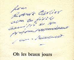 ENVOI AUTOGRAPHE SIGNÉ DE SAMUEL BECKETT : « Pour Robert Carlier Avec la fidèle amitié de son toujours reconnaissant