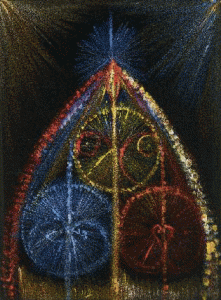 BOURGOGNE Gustave. CROIS, M, ESPERE, O, MON PERE. PEINTURE SUR TISSUS SIGNEE. 33,5 x 25 cm, sous passe-partout.