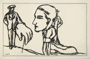 MAGRITTE René. DESSIN ORIGINAL SIGNÉ. 1928. 26,5 x 40 cm sous encadrement.