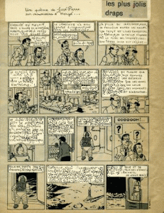 Textes autographes de José Pierre remplaçant dans les bulles les dialogues d’Hergé.