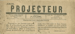REVUE. PROJECTEUR. Directrice : Céline Arnauld. Paris, numéro 1 du 21 mai 1920. 10,5 x 23 cm, agrafé.