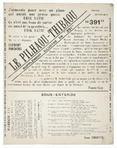 Textes de Francis Picabia, Pierre de Massot, Georges Auric, Clément Pansaers, Funny-Guy (pseudonyme de Picabia) qui en anglais familier signifie rigolo.