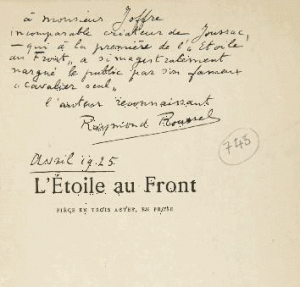ENVOI AUTOGRAPHE SIGNÉ DE RAYMOND ROUSSEL : « à Monsieur Joffre incomparable créateur de Joussac, qui à la première